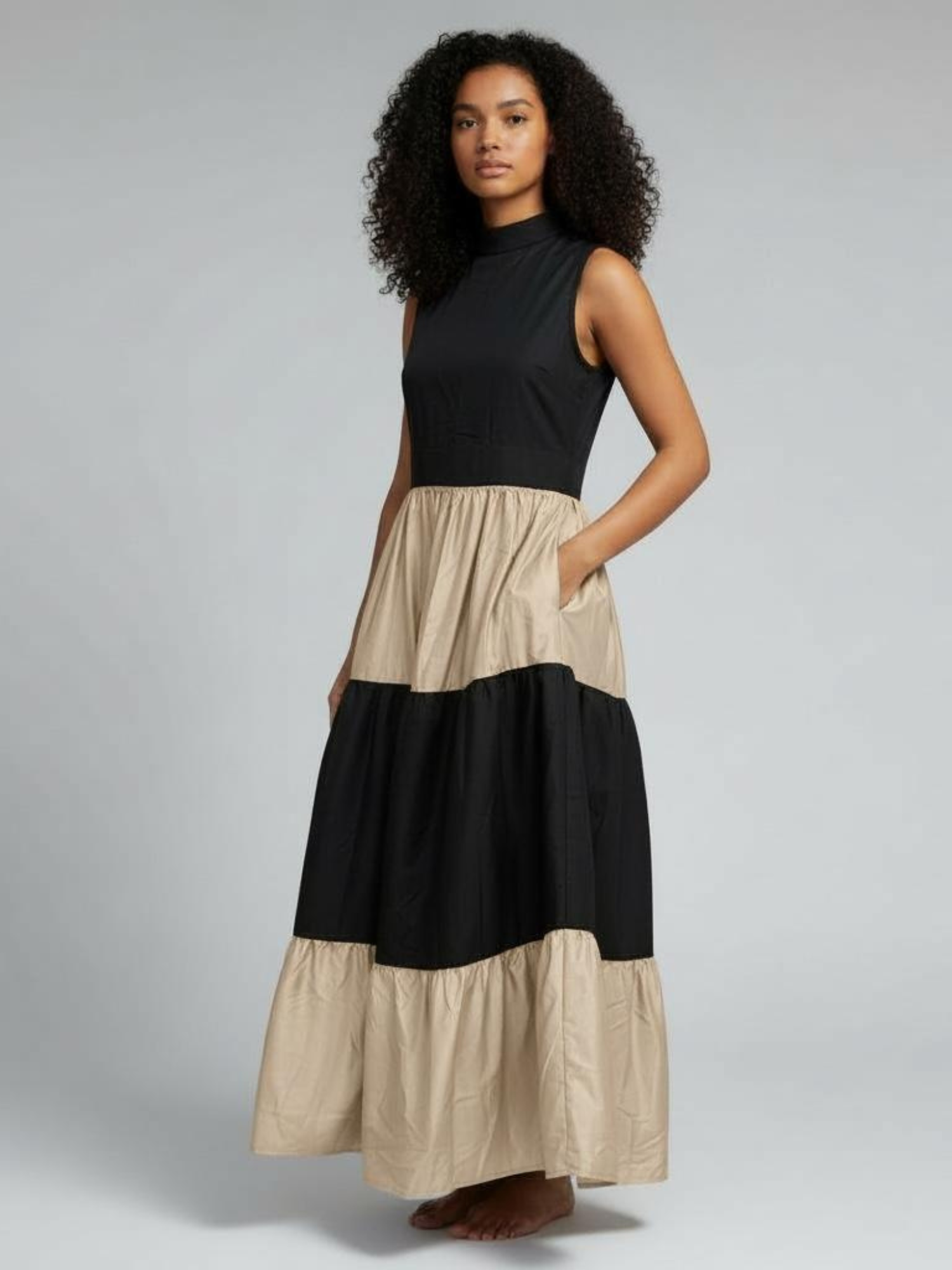Karimi Tiered Maxi Dress - Black & Beige