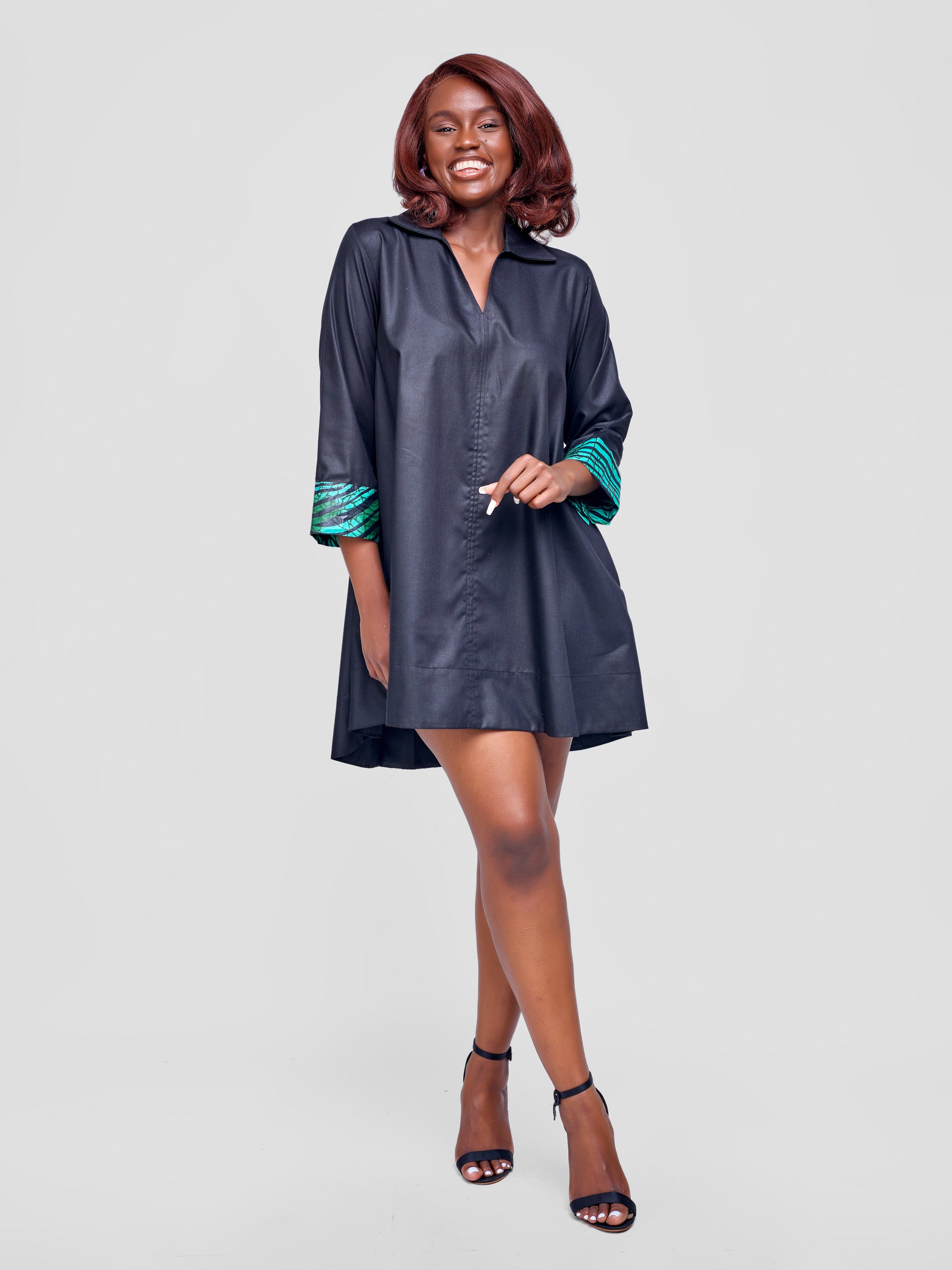 Zuri Shift Dress - Black & Teal